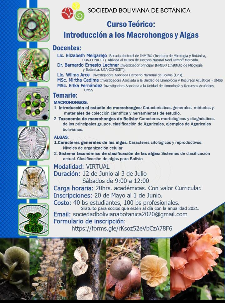 25 May 2021 Curso Teórico: Introducción a los macrohongos y algas por Observatorio Ambiental UAGRM | publicado en: Noticias | 0 Comparte este artículo por: