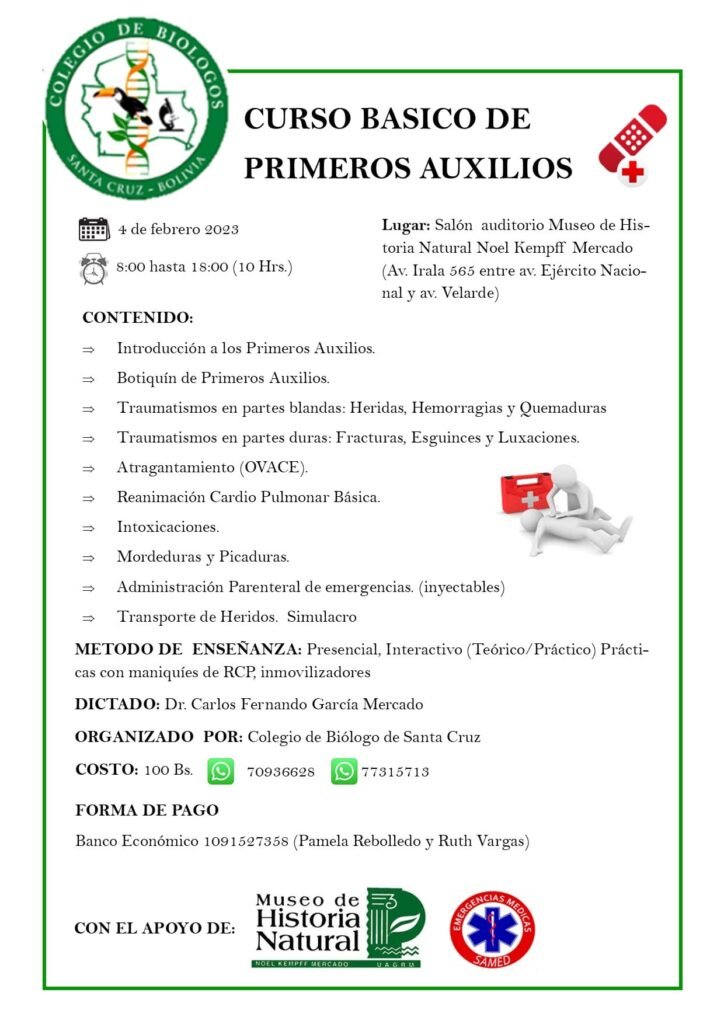 24 Ene 2023 Curso básico de Primeros auxilios por Observatorio Ambiental UAGRM | publicado en: Noticias | 0 Comparte este artículo por: