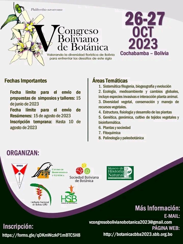 14 May 2023 V Congreso Boliviano de Botánica por Observatorio Ambiental UAGRM | publicado en: Noticias | 0 Comparte este artículo por:
